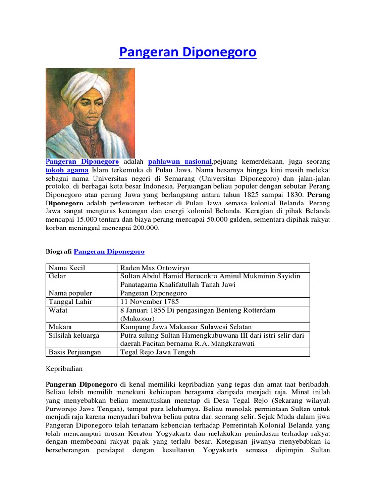 Sejarah Pangeran Diponegoro : Keberadaan Keris Bondoyudo Milik Pangeran Diponegoro Masih Jadi Misteri Laman 3 Krjogja / Smissaert mengabaikan pendapat pangeran diponegoro dalam persoalan ganti rugi sewa tanah yang dapat membawa kesultanan pada kebangkrutan.. Pangeran diponegoro adalah salah satu pangeran yang juga dikenal sebagai salah pahlawan nasional republik indonesia yang sangat berani untuk melawan para penjajah belanda. Jalan rasuna said was a relatively new thoroughfare in jakarta, having been planned during the early 1970s, when the indonesian economy began a period of sustained high economic growth as a result of oil export revenue during the 1973 global energy crisis. Feb 15, 2021 · maka, pada oktober 1676, pangeran adipati anom berbalik mendukung ayahnya, amangkurat i. Desa ini juga mempunyai riwayat sebagai peninggalan dari zaman peperangan pangeran diponegoro tahun 1825. Dec 08, 2017 · perlawanan rakyat di berbagai daerah seperti perang padri perang diponegoro perang banjar dan sebagainya pada masa penjajah gagal mengusir penjajah dari indonesia karena pada masa itu tergantung pada satu pemimpin, mengandalkan kekuatan fisik, bersifat kedaerahan.